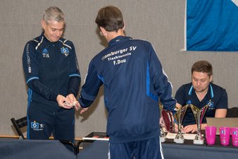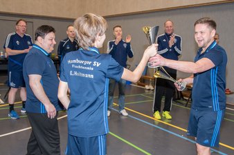 Die HSV-Tischtennis Vereinsmeisterschaften waren erneut ein schöner Jahresabschluss. Neben spannenden Spielen gab es anregende Unterhaltungen am leckeren “Buffet”, Ehrungen von verdienten Mitgliedern und den 1. 2. und 3. Siegern/Siegerinnen. In der Einzel-Konkurrenz A zwischen Stephan Peters und Alexander Kostka konnte, nach 5 umkämpften Sätzen, Stephan Peters den Henkelpott mit nach Hause nehmen. In den anderen Einzel-Konkurrenzen B & C siegten Friedrich Kairies und Ralph Haiber.